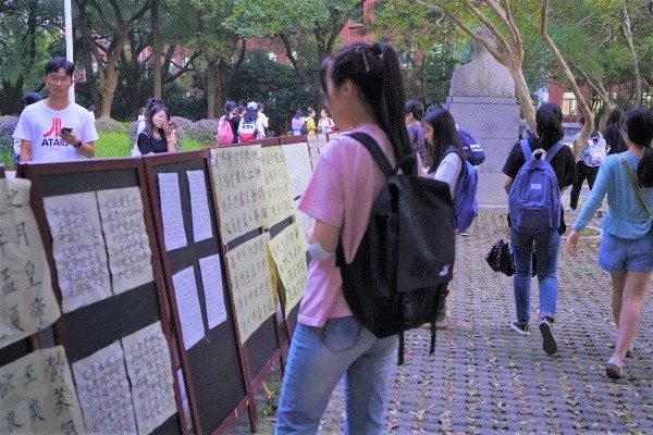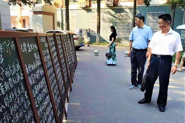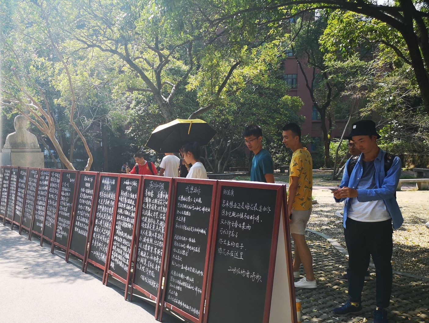 为庆祝中华人民共和国成立70周年,js金沙3983总站组织开展“诗词迎国庆,吟诵传文明”系列活动。主要活动包括原创“我和我的祖国”诗歌评比活动、“诗词迎国庆,吟诵传文明”古典诗词吟诵大会和原创作品书法展。此次展示的书法作品精选自js金沙3983总站师生暑期为祖国七十华诞原创的500余首作品。展览期间,吸引了广大师生驻足观摩。