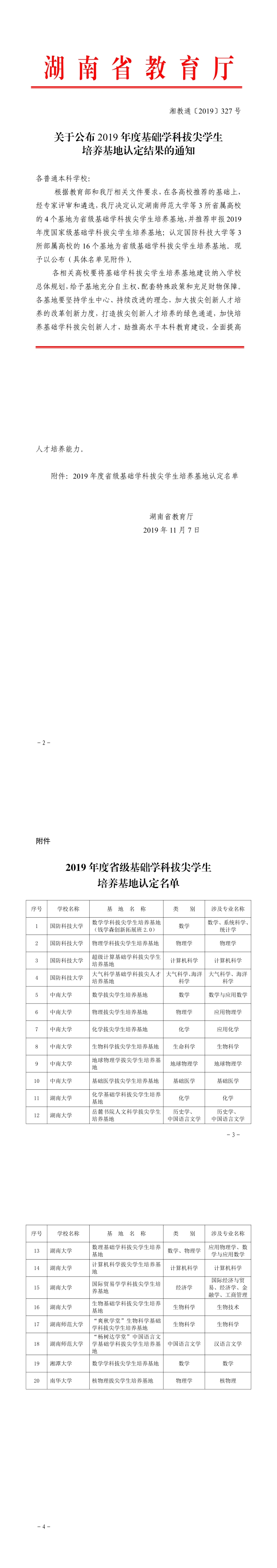 此次获认定的共有6所高校的20个基地,学校文理科各有一项。