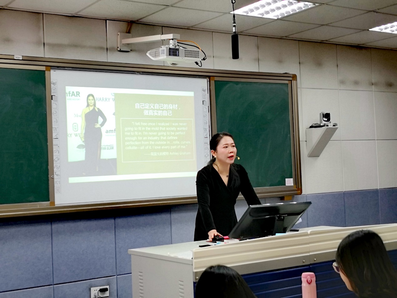 易瑛结合了与“女性审美”相关的性别论争、图片、视频、具体数据等,围绕“什么是女性美”、“女性审美的误区”和“倡导平等的性别审美观念”三个方面展开授课内容。指出了女性既是审美客体,又是具有自我能动性的审美主体。但在父权制文化中,女性美在男性的“凝视”中被客体化,体现了“男尊女卑”的社会性别的等级秩序,造成了绵延千年的女性“缠足”等悲剧。今天,商业文化与走向隐形的父权制意识形态合谋,将女性美商品化。女性对“颜值”的过度追求,男性中心文化对女性身体美的标准、意义及价值的渲染,大众审美时尚的渗透,以及商业机构的推波助澜,导致了女性审美中缺少主体性的病态仍在当代延续。最后,易瑛强调,要创造多维的女性美,需要冲破传统身份的根深蒂固、单一审美视角的顽固限制、商业经济的恶意围攻三重障碍,实现审美观念、审美行为、审美观照的更新。女性要改变与身体为敌的态度,建立自信,追求男女平等,实现男女和谐共存,创造属于女性的多维人生美。课堂内容丰富充实,讲授深入浅出,图文并茂,课堂气氛活跃。
