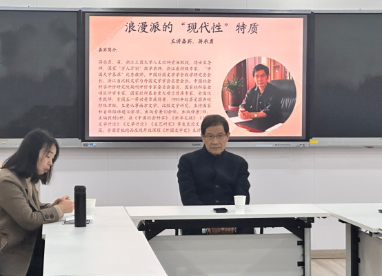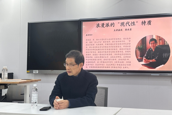 (通讯员康乔)2024年12月20日下午,浙江工商大学蒋承勇教授应邀至js金沙3983总站开展题为《浪漫派的“现代性”特质》的学术讲座。本次讲座由比较文学与世界文学教研室谢淼教授主持,徐超老师及比较文学与世界文学专业全体硕博士生参加。