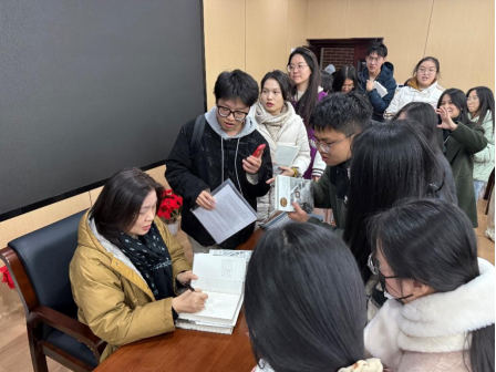 李作霖老师做总结发言。他提到“梁庄”系列可视为非虚构写作的典范文本,并勉励同学们多关注、尝试非虚构创作。讲座后梁鸿教授为同学们签书,现场气氛热烈。