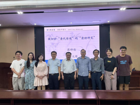 (通讯员罗磊)5月20日晚七点半,苏州大学js金沙3983总站罗时进教授应邀在js金沙官网216会议室开展题为“做切于‘清代情境’的‘清诗研究’”的讲座。该讲座由颜建华教授主持,吕双伟教授、胡海义教授、向双霞、王珂等老师以及本院硕博研究生和广西师范大学本科研学团师生近100人参加。